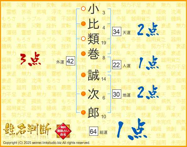 小(3画)比(4画)類(19画)巻(8画) 誠(14画)次(6画)郎(10画)