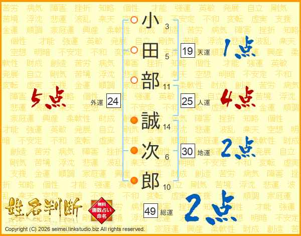 小田部誠次郎さんの人運は25画の4点!