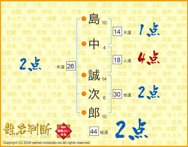 島(10画)中(4画) 誠(14画)次(6画)郎(10画)