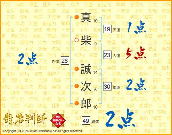 真柴誠次郎さんの総運は49画の2点!