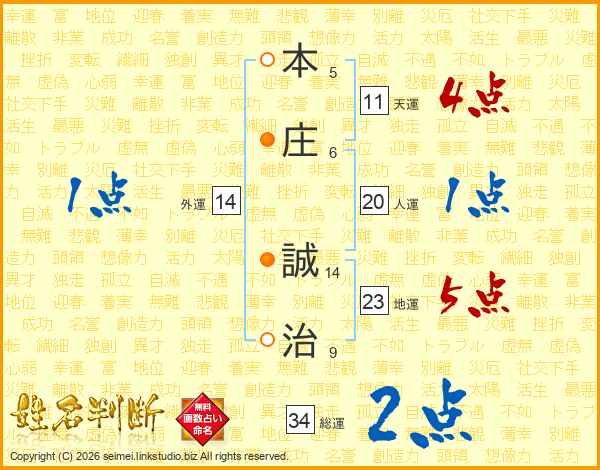 本(5画)庄(6画) 誠(14画)治(9画)