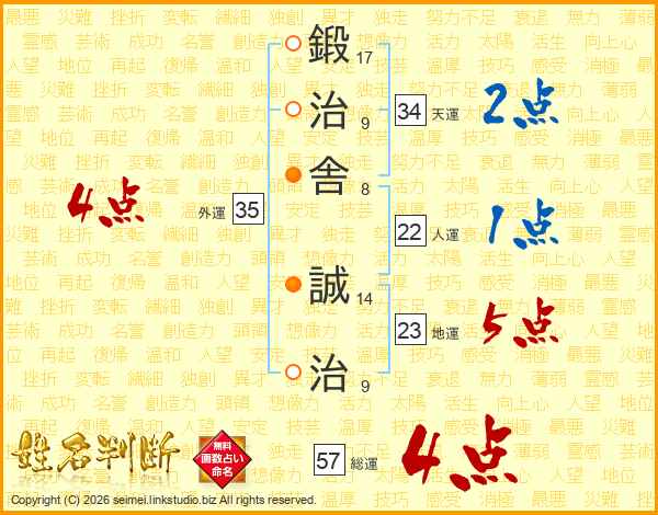 鍛治舎誠治さんの総運は57画の4点!