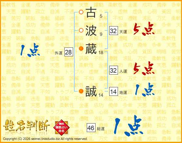 古波蔵誠さんの総運は46画の1点!
