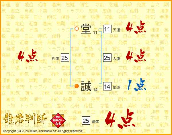 堂(11画) 誠(14画)