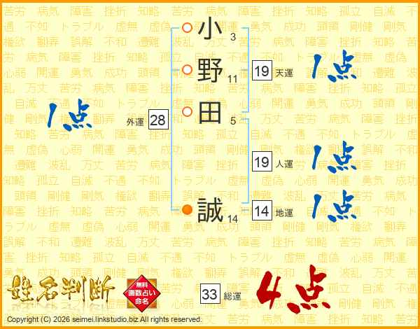 小野田誠さんの総運は33画の4点!