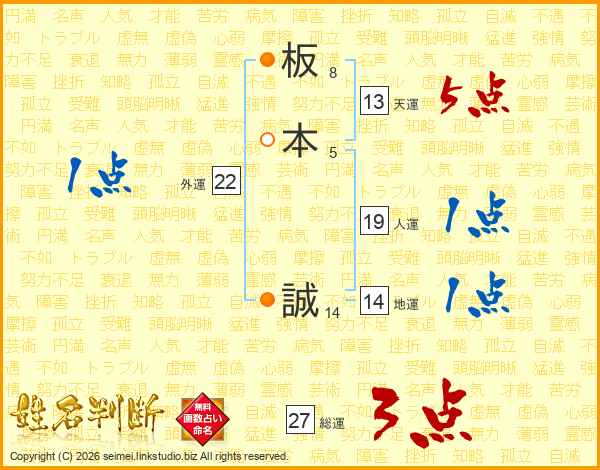 板本誠さんの総運は27画の3点!
