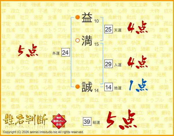 益(10画)満(15画) 誠(14画)