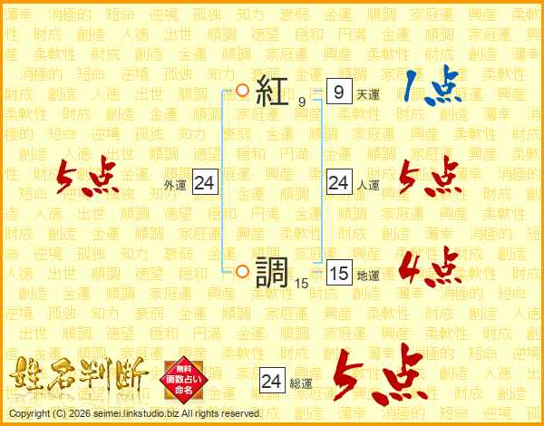 紅調さんの総運は24画の5点!