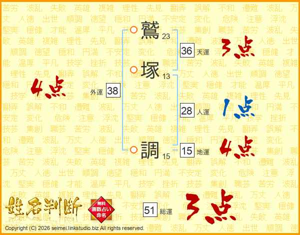 鷲塚調さんの天運は36画の3点!
