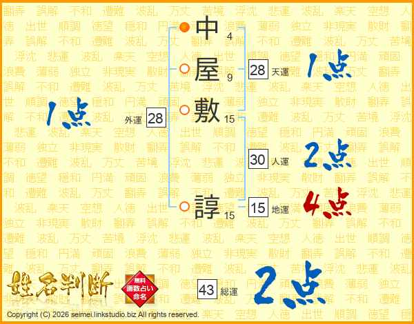 中屋敷諄さんの地運は15画の4点!