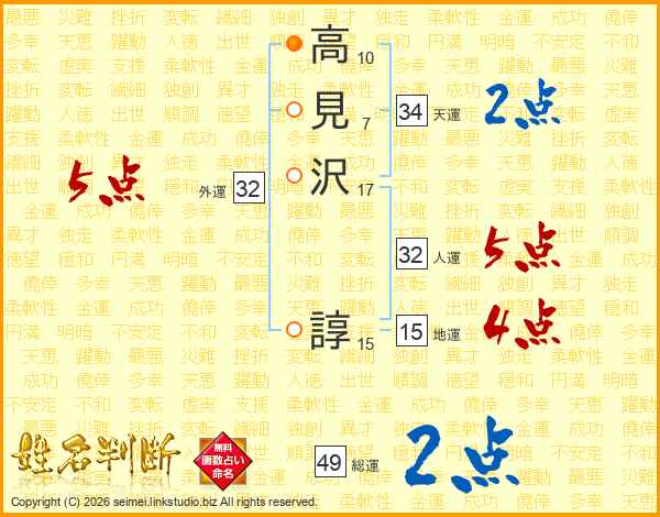 高見沢諄さんの総運は49画の2点!