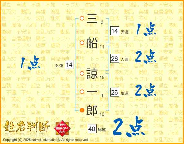三船諒一郎さんの地運は26画の2点!