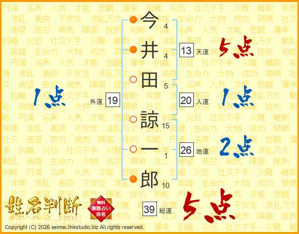 今井田諒一郎さんの総運は39画の5点!