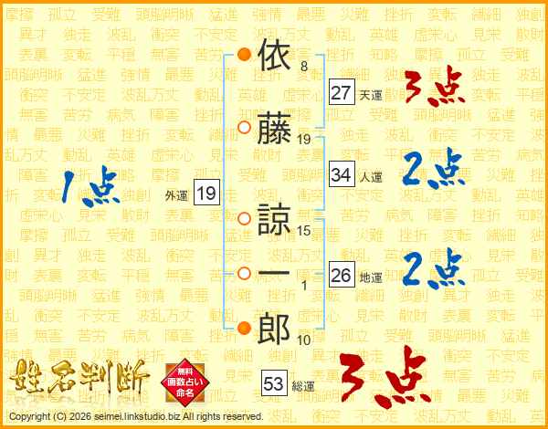 依(8画)藤(19画) 諒(15画)一(1画)郎(10画)