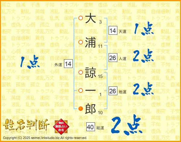 大浦諒一郎さんの総運は40画の2点!