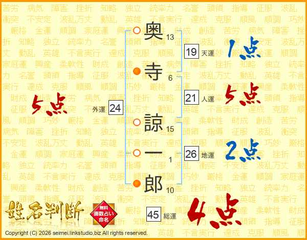 奥寺諒一郎さんの総運は45画の4点!