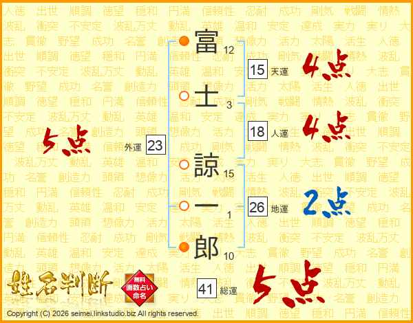 富士諒一郎さんの総運は41画の5点!