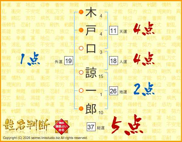 木戸口諒一郎さんの総運は37画の5点!