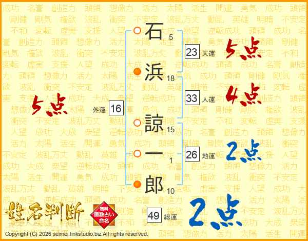 石浜諒一郎さんの天運は23画の5点!