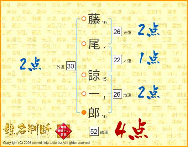 藤尾諒一郎さんの総運は52画の4点!