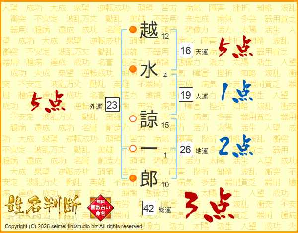 越水諒一郎さんの総運は42画の3点!