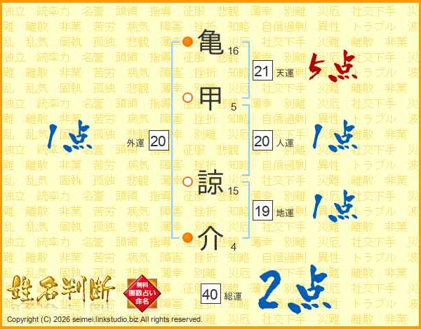 亀甲諒介さんの天運は21画の5点!
