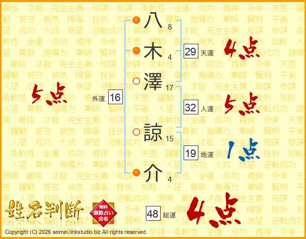 八木澤諒介さんの天運は29画の4点!