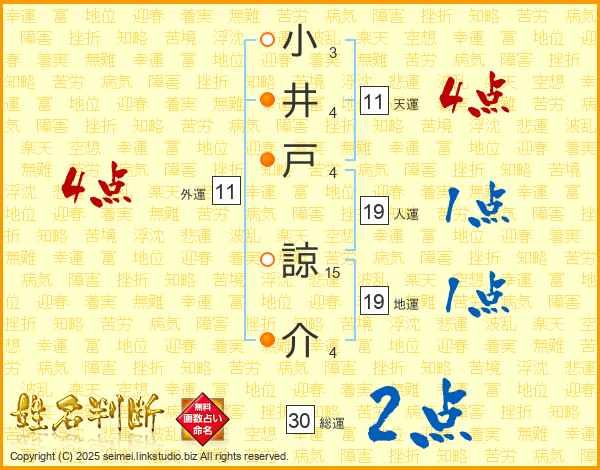 小(3画)井(4画)戸(4画) 諒(15画)介(4画)