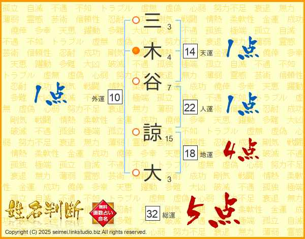 三木谷諒大さんの総運は32画の5点!