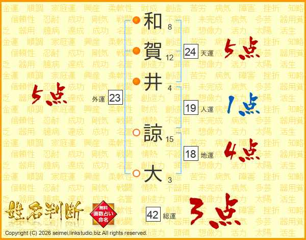 和(8画)賀(12画)井(4画) 諒(15画)大(3画)