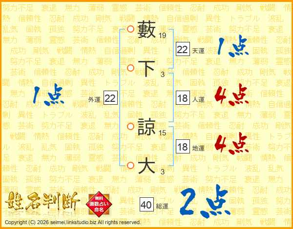 藪下諒大さんの総運は40画の2点!
