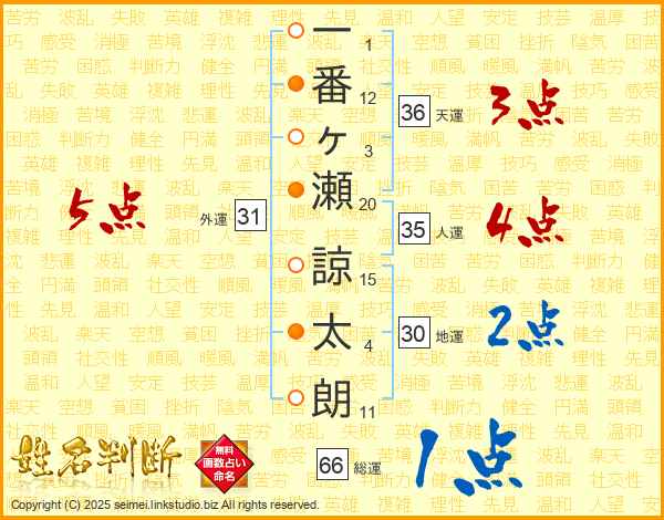 一番ヶ瀬諒太朗さんの天運は36画の3点!