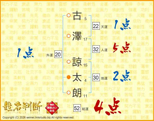 古澤諒太朗さんの総運は52画の4点!