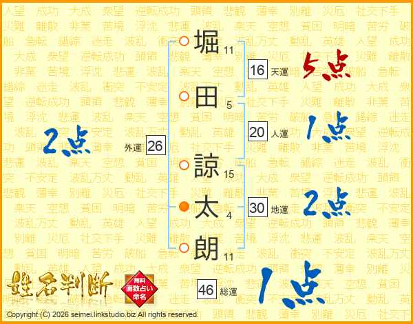 堀田諒太朗さんの総運は46画の1点!