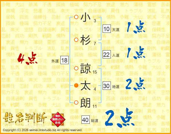 小杉諒太朗さんの総運は40画の2点!
