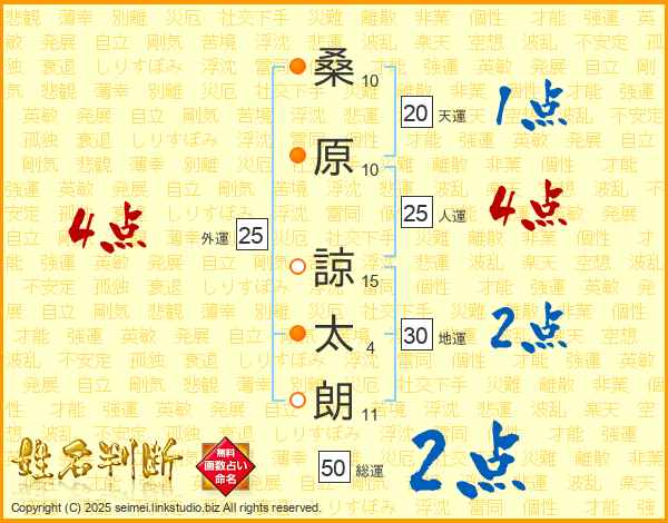 桑原諒太朗さんの総運は50画の2点!