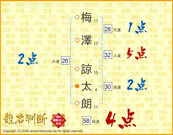 梅澤諒太朗さんの総運は58画の4点!