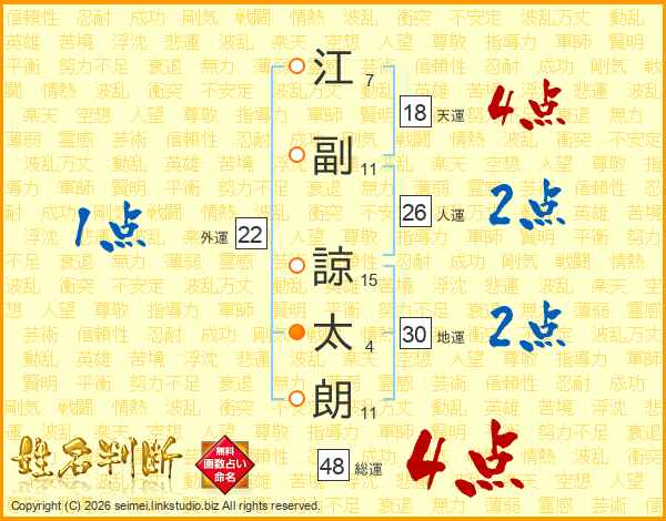 江副諒太朗さんの総運は48画の4点!