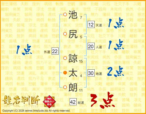 池尻諒太朗さんの地運は30画の2点!
