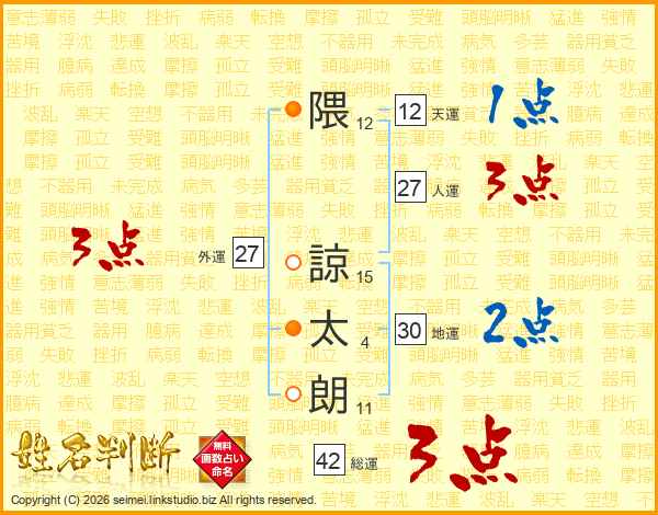 隈諒太朗さんの人運は27画の3点!