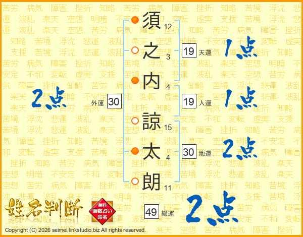 須之内諒太朗さんの総運は49画の2点!