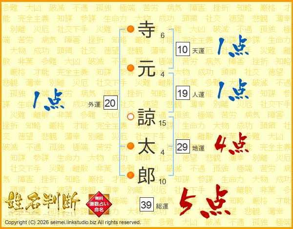 寺元諒太郎さんの総運は39画の5点!