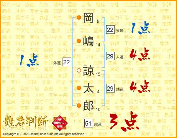 岡嶋諒太郎さんの人運は29画の4点!