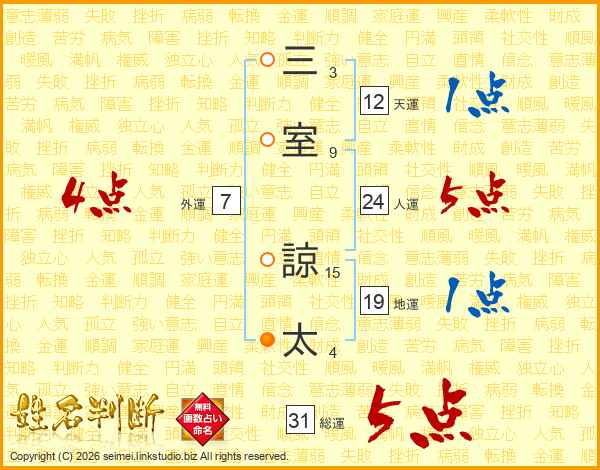 三室諒太さんの総運は31画の5点!