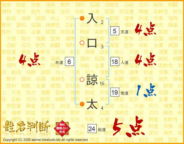 入口諒太さんの総運は24画の5点!