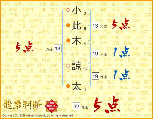 小此木諒太さんの総運は32画の5点!
