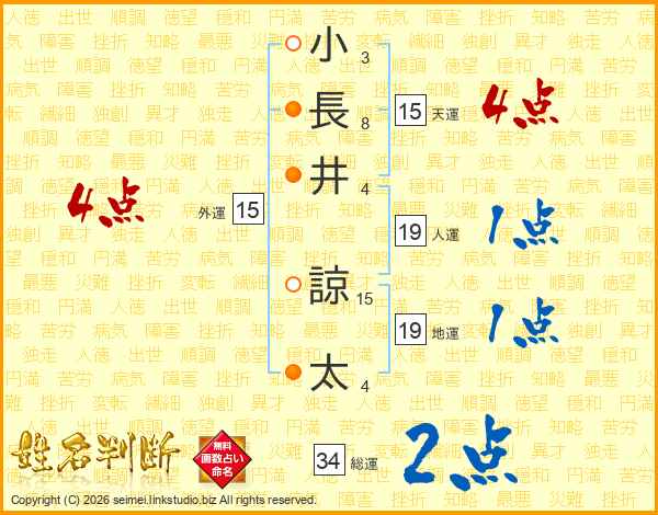 小長井諒太さんの天運は15画の4点!