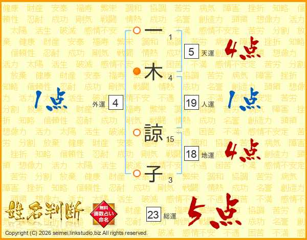一木諒子さんの総運は23画の5点!