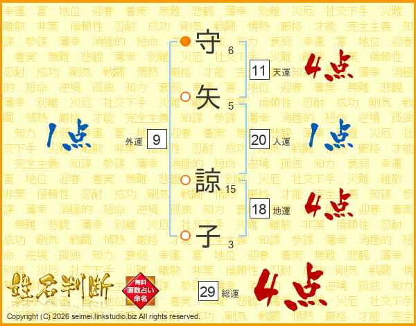 守(6画)矢(5画) 諒(15画)子(3画)