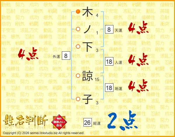 木ノ下諒子さんの天運は8画の4点!